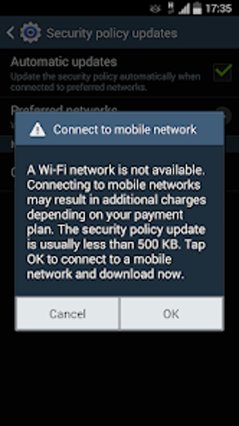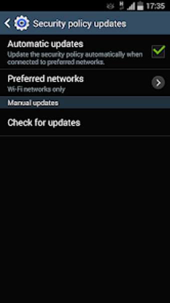 Samsung Säkerhetspolicyuppdateringär en fullständig programvara för Android som tillhör kategorin 'Företag och produktivitet'.